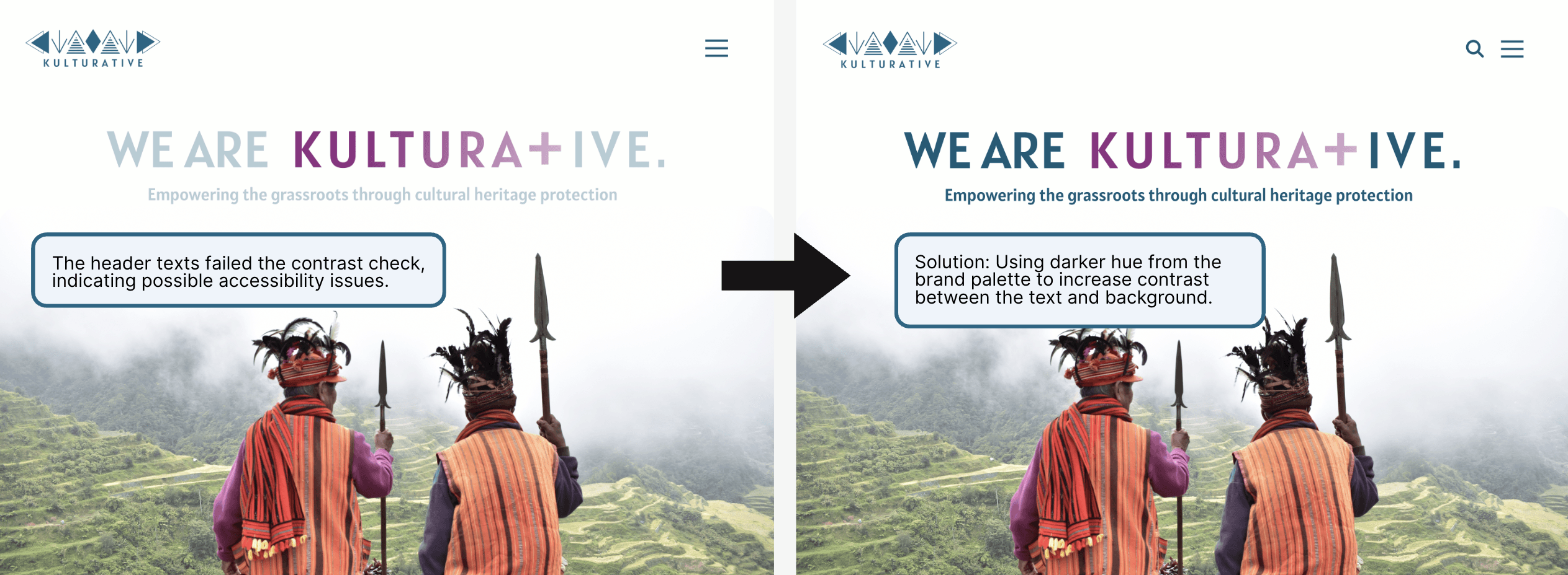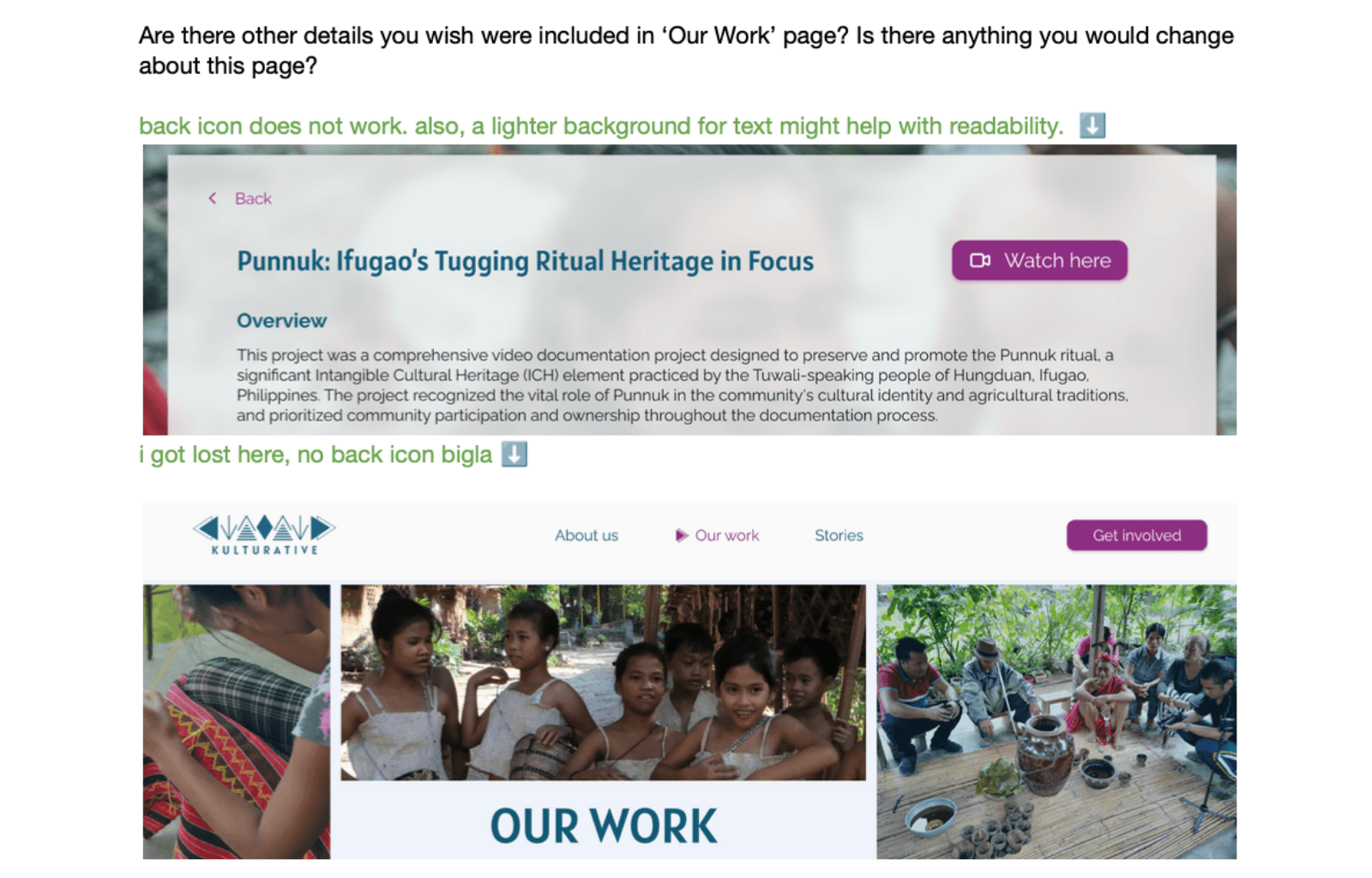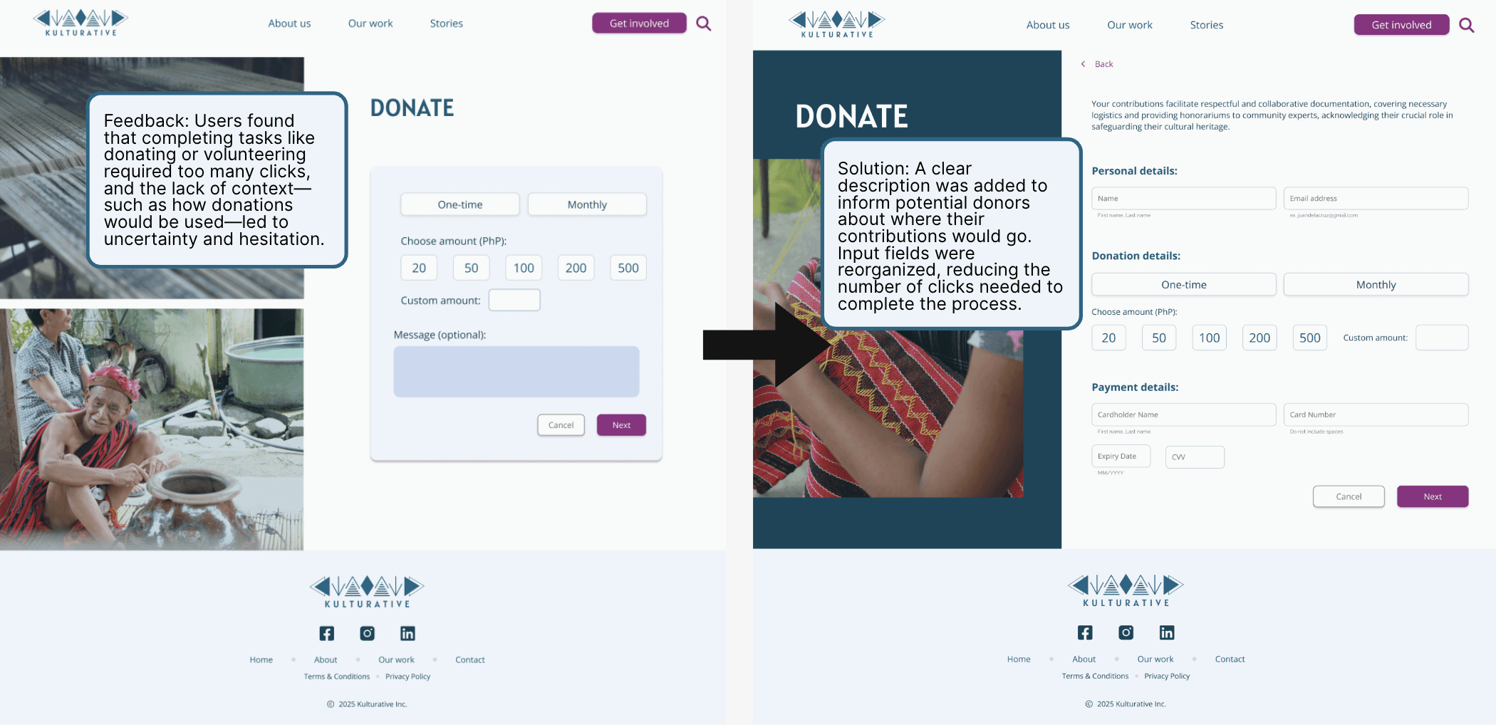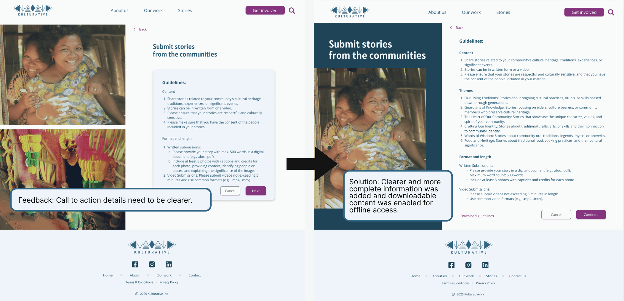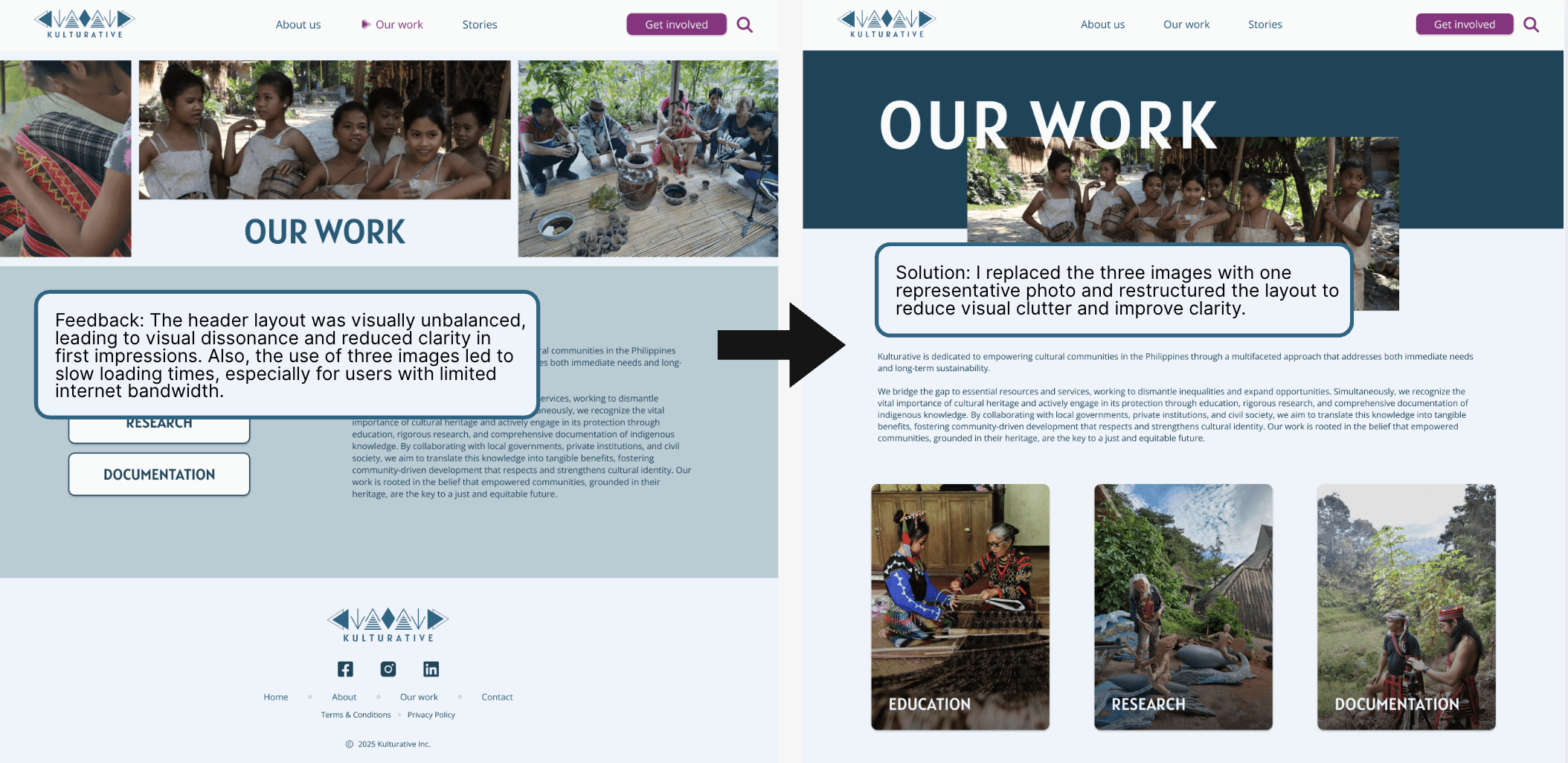 Based on the user testing feedback, I made key iterations to improve Kulturative's website.
