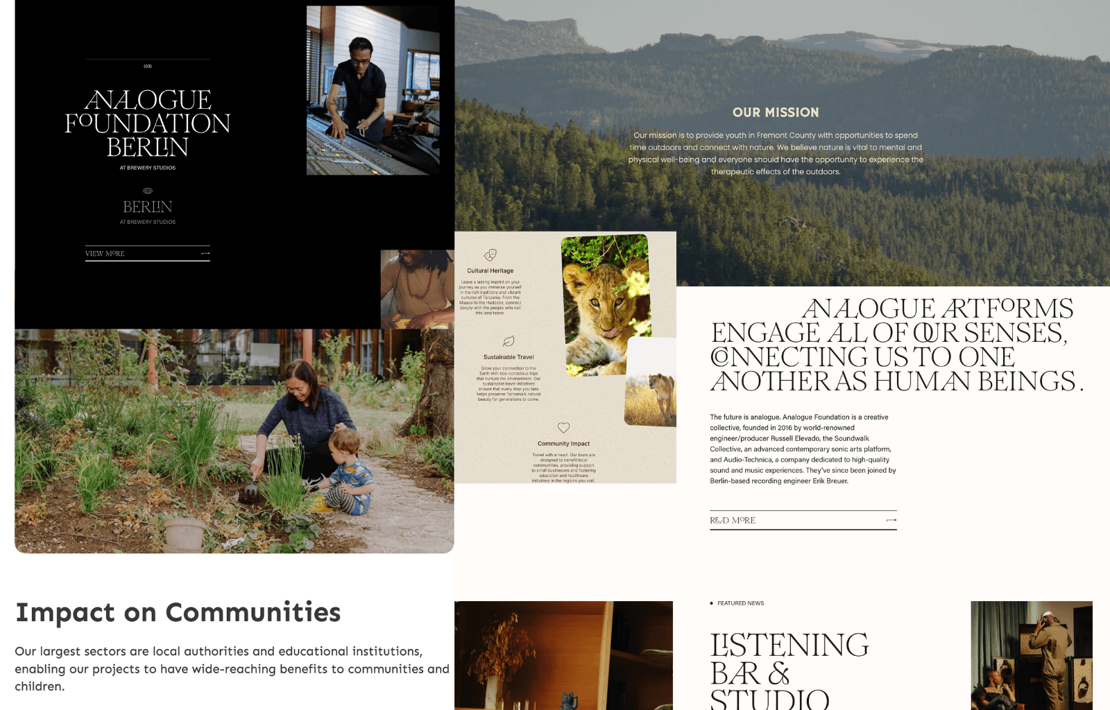 Below are combined screenshots from some websites related to non-profit work or cultural initiatives