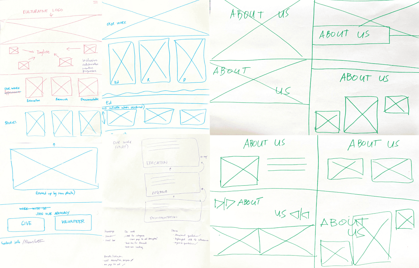 I started ideating the website layout and features by sketching on paper before creating lo-fi and hi-fi mockups and prototypes.